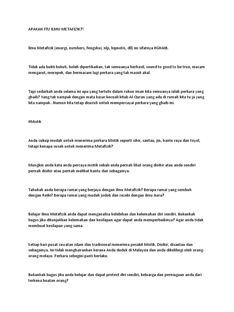 Perubatan Metafizik. Sila buat temujanji sebelum datang bagi mengelakan dati anda menunggu lama. Dan rawatan aura metafizik ini telah disenaraikan dan telah diterima oleh kementerian kesihatan malaysia sebagai salah satu rawatan . The following transit lines have routes that . Di dalam bahasa arab, ilmu metafizik dikenali sebagai ilm ma ba'da.